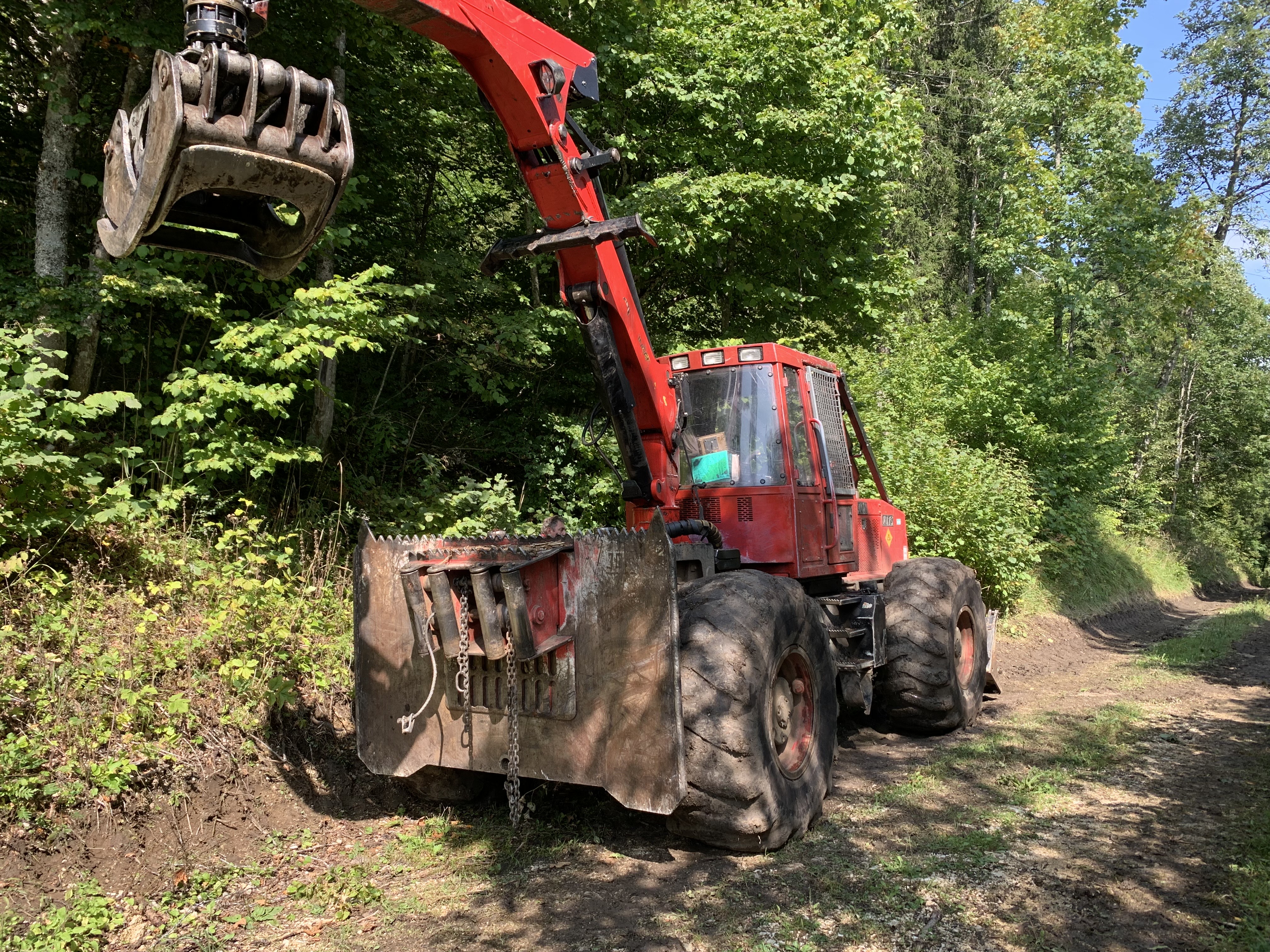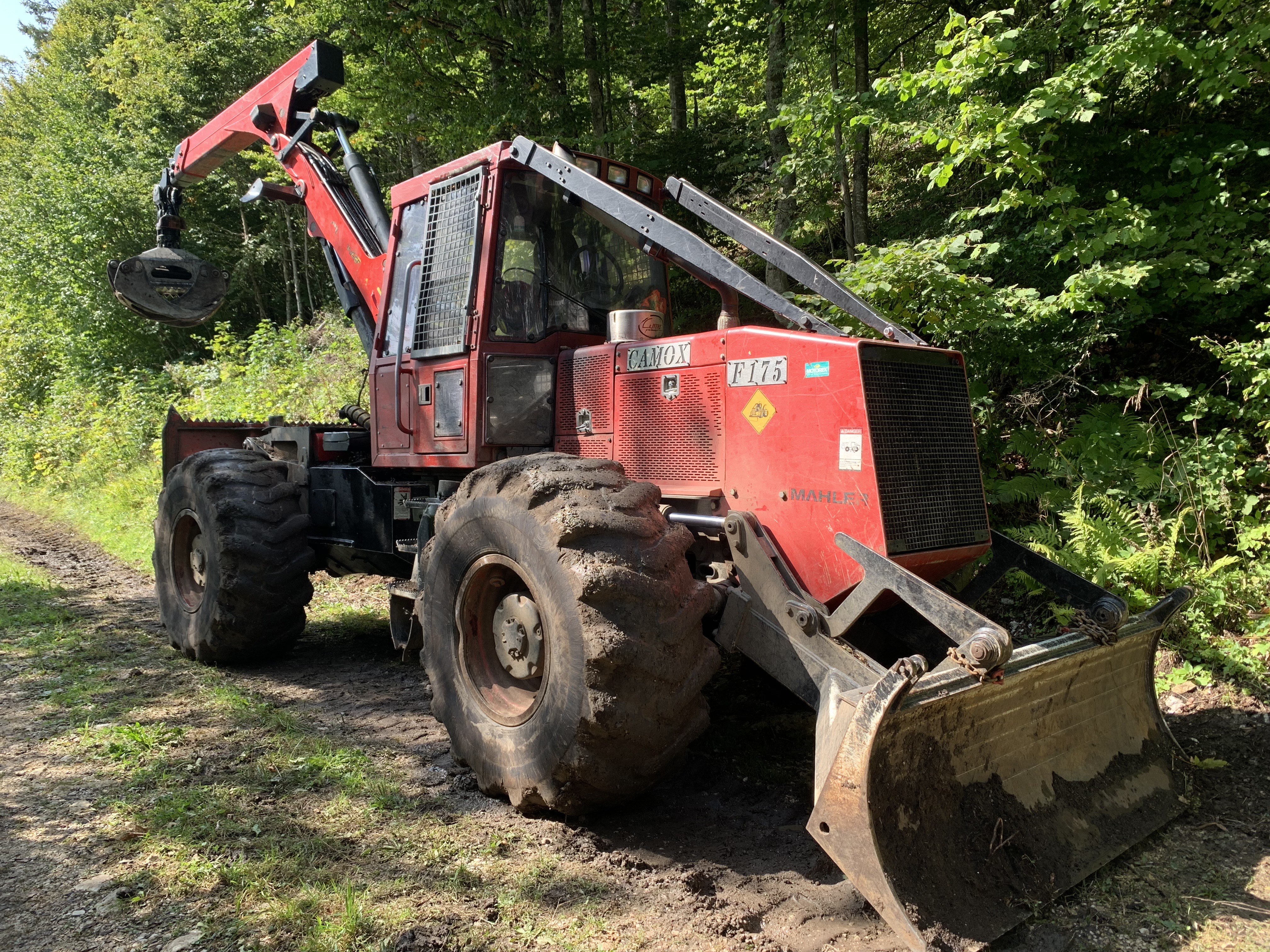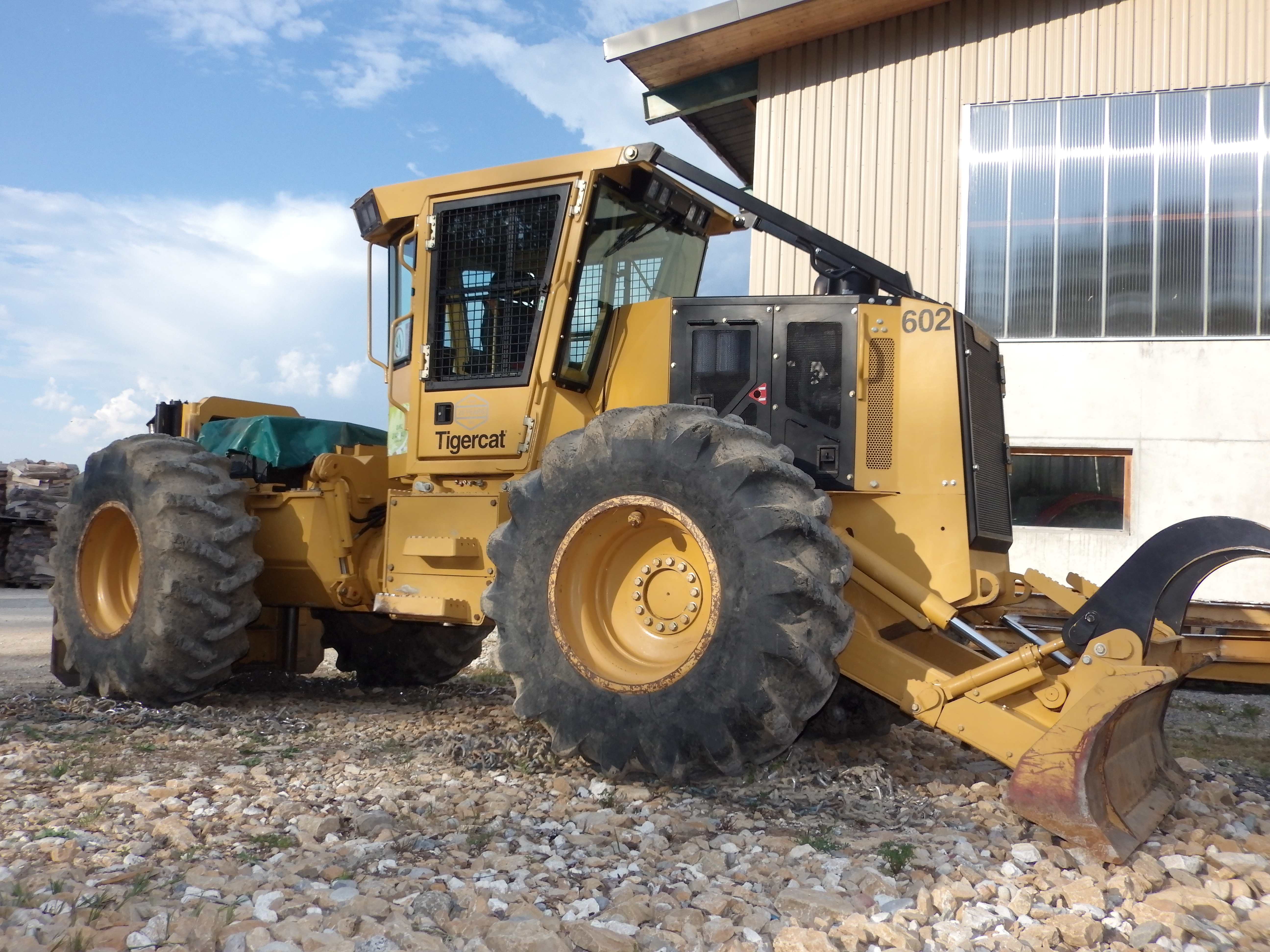 TIGERCAT 602 ANNEE 2018 - 2300 HEURES DOUBLE TREUIL CMC 2 X 16T RODIO INTEGRALE AREQUIP TABLIER HYDRAULIQUE + LAME AVANT + PINCES ROUES 24.5.32 + PNEUS 50% d'usure